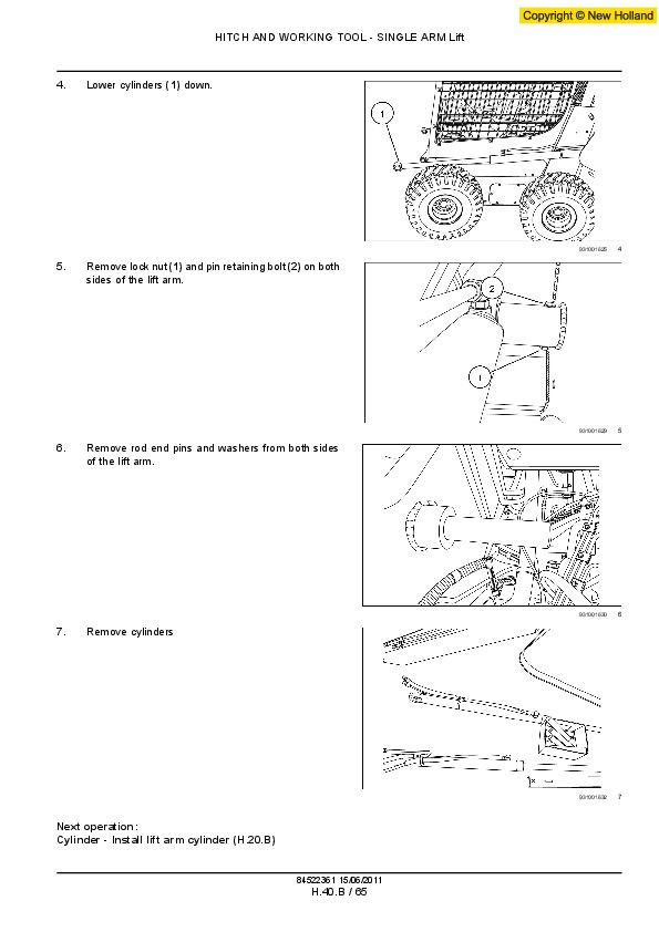 Prior operation: SINGLE ARM Lift - Remove single lift arm (H.40.B)]