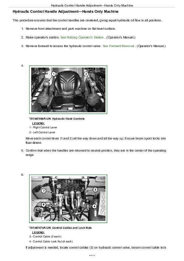 Hydraulic Control Handle Adjustment—Hands Only Machine................860