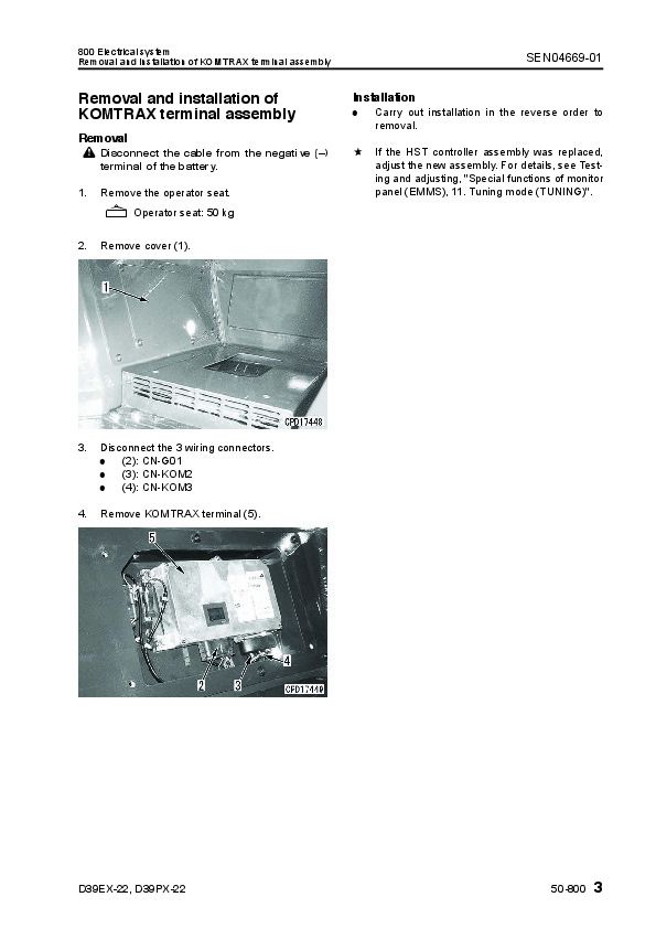 Removal and installation of KOMTRAX terminal assembly...1901