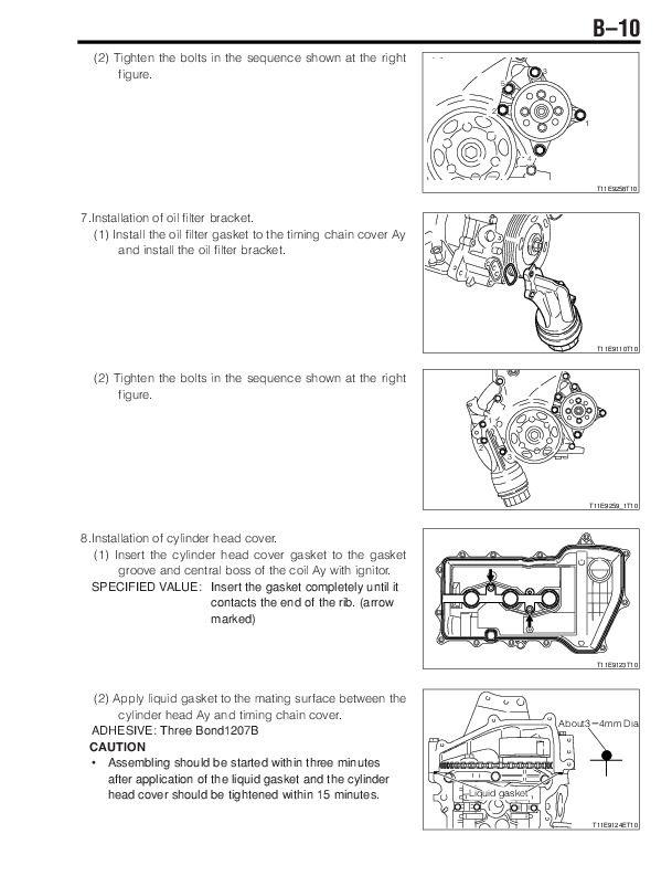 3.Remove the cylinder head cover Ay and cylinder head cover gasket by removing the attaching bolts and nuts in the sequence shown at the right figure.